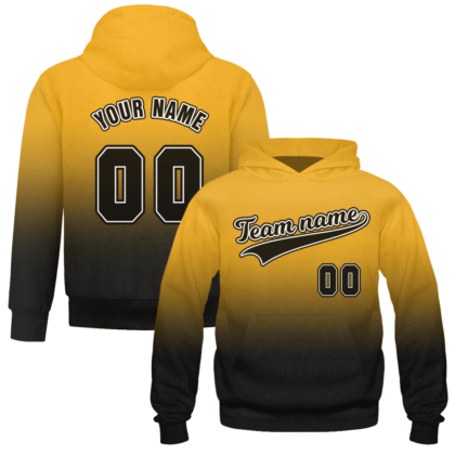 Custom Yellow-Black Fade Fashion Hoodie Sweatshirt Personalized Name Number Logo