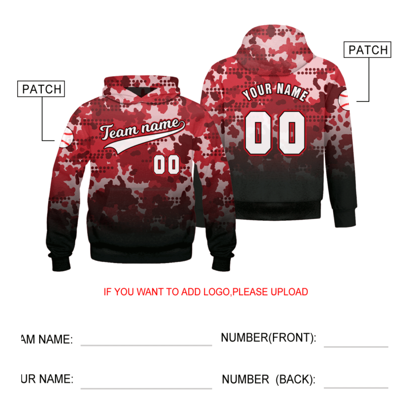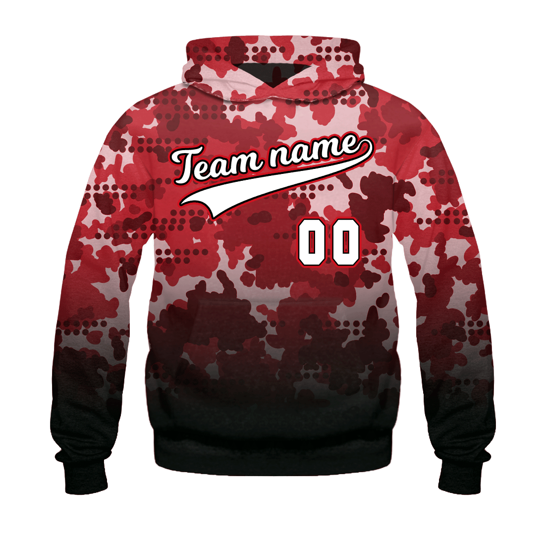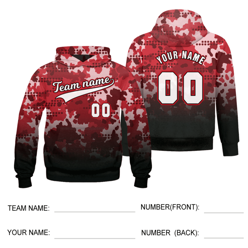 Custom Red Camouflage Sports Pullover Sweatshirt Hoodie