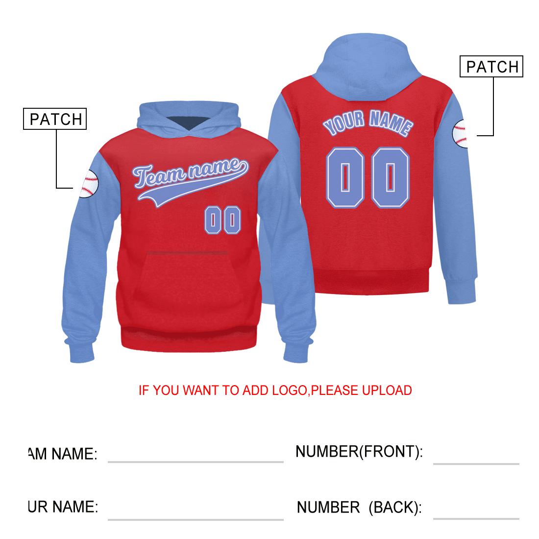 Custom Red-Light blue Hoodie & Sweatshirt Personalized Name Number Logo